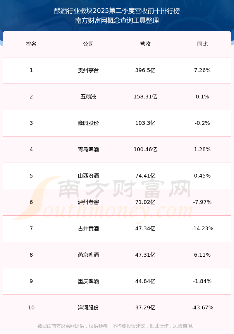 按照南方财富网概念查询工具统计,该股所属板块为酿酒行业板块,该板块共有42只股票,金徽酒2025第二季度营收在该板块中排名为第24名,该板块2025第二季度营收排名前十的股票如下表: