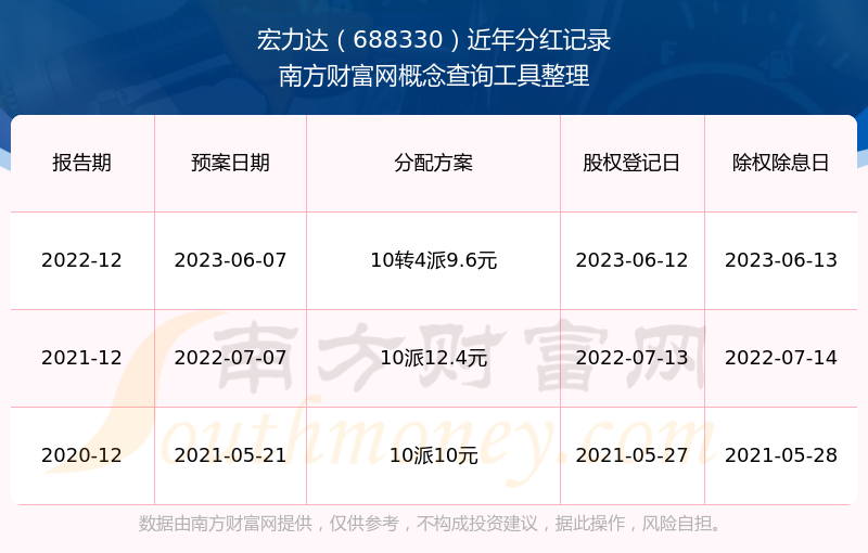 宏力达最新一次公布的分红方案:10转4派9.6元。