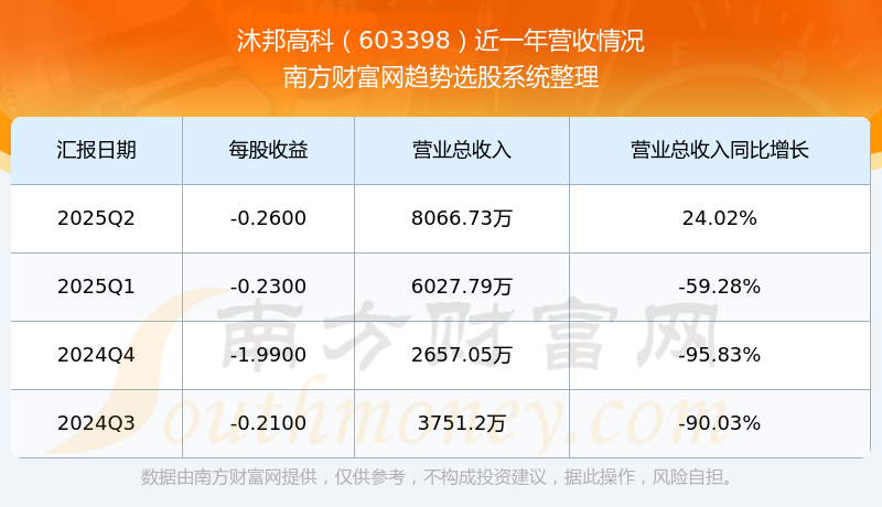 沐邦高科股票近一年营收情况如下表: