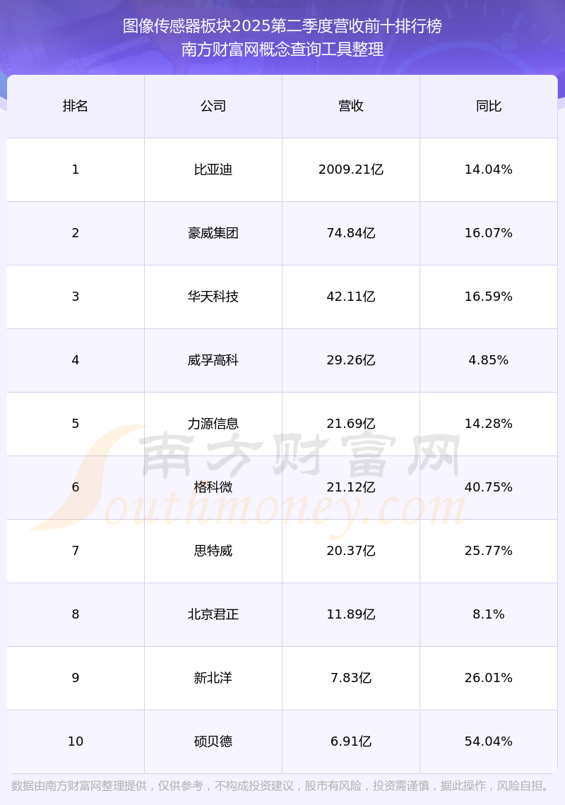 按照南方财富网概念查询工具统计,该股所属板块为图像传感器板块,该板块共有15只股票,格科微2025第二季度营收在该板块中排名为第6名,该板块2025第二季度营收排名前十的股票如下表: