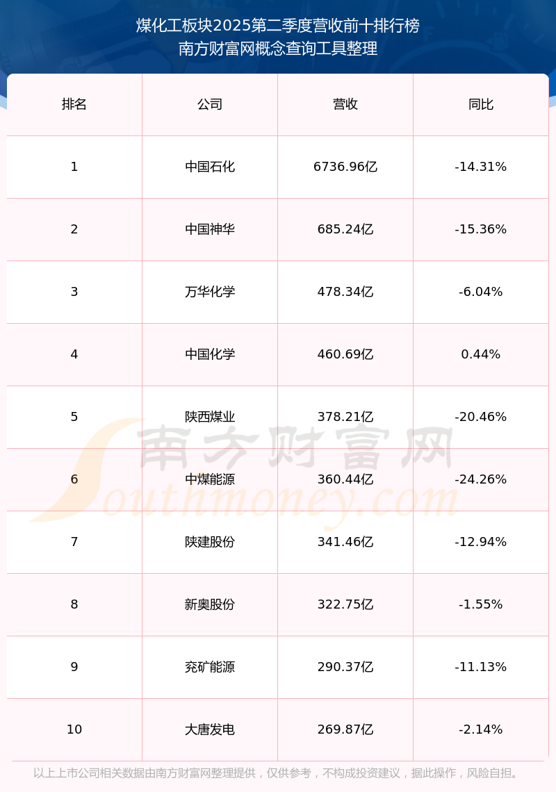 按照南方财富网概念查询工具统计,该股所属板块为煤化工板块,该板块共有115只股票,兖矿能源2025第二季度营收在该板块中排名为第9名,该板块2025第二季度营收排名前十的股票如下表: