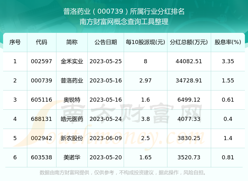 按照南方财富网趋势选股系统统计,普洛药业所属行业为原料药行业,原料药行业分红排名情况如下表: