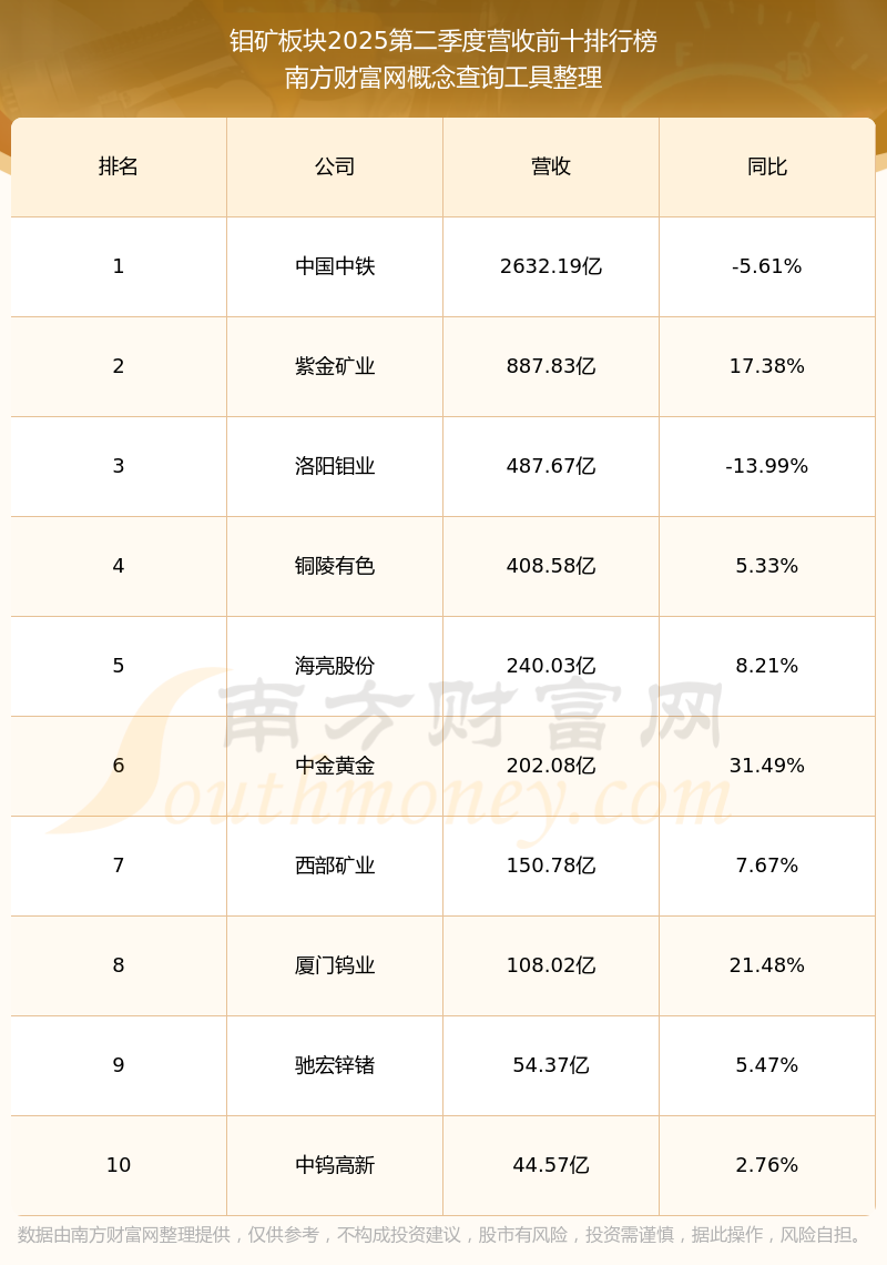 按照南方财富网概念查询工具统计,该股所属板块为钼矿板块,该板块共有16只股票,金钼股份2025第二季度营收在该板块中排名为第11名,该板块2025第二季度营收排名前十的股票如下表: