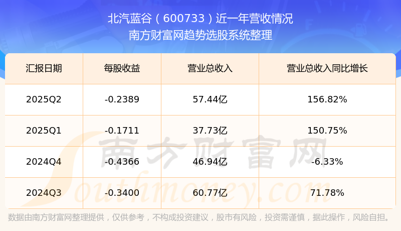 2025年第二季度,北汽蓝谷营收同比156.82%,净利润同比12.9%。