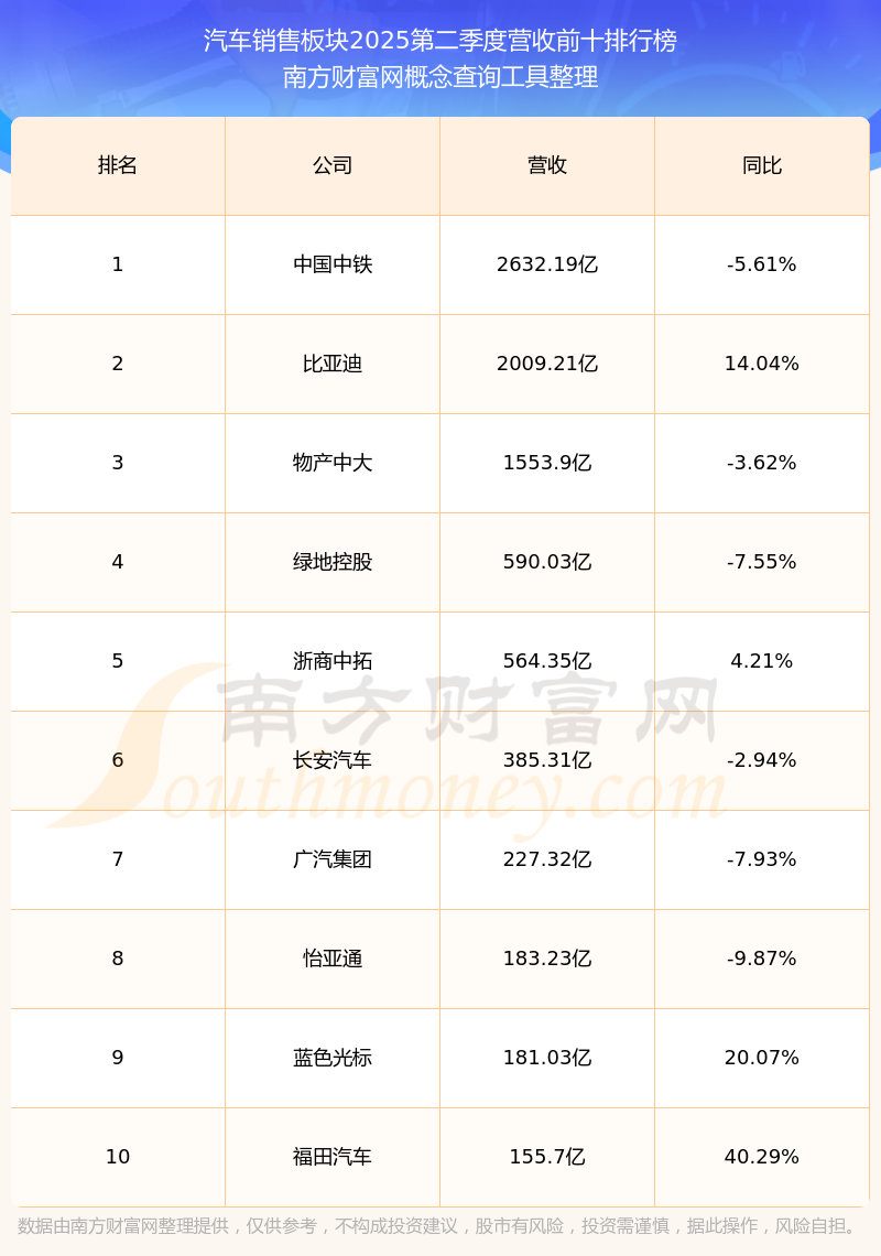 按照南方财富网概念查询工具统计,该股所属板块为汽车销售板块,该板块共有57只股票,北汽蓝谷2025第二季度营收在该板块中排名为第57名,该板块2025第二季度营收排名前十的股票如下表: