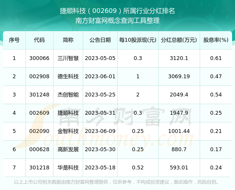 按照南方财富网趋势选股系统统计,捷顺科技所属行业为互联网服务行业,互联网服务行业分红排名情况如下表: