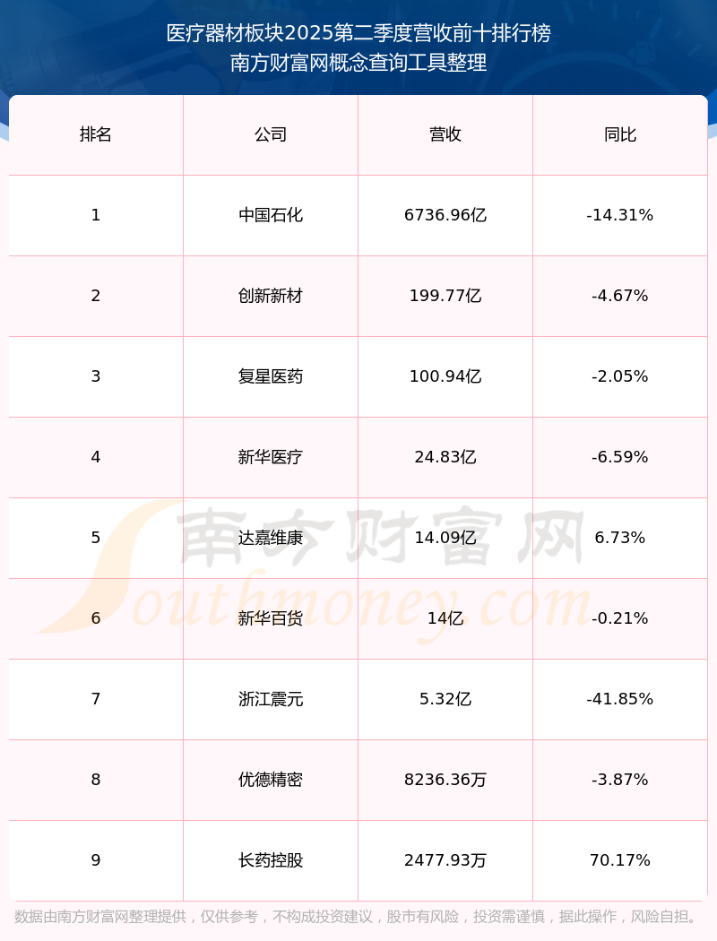 按照南方财富网概念查询工具统计,该股所属板块为医疗器材板块,该板块共有9只股票,心脉医疗2025第二季度营收在该板块中排名为第9名,该板块2025第二季度营收排名前十的股票如下表: