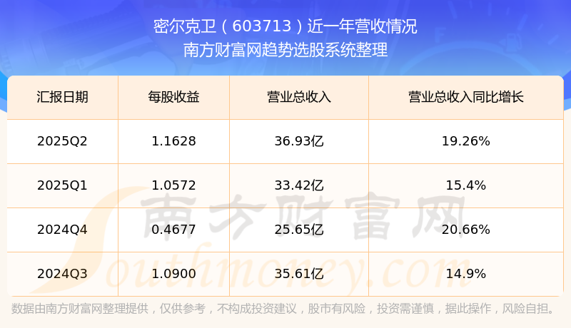 密尔克卫2025年第二季度财报显示,公司主营收入36.93亿元,同比19.26%;归母净利润1.8亿元,同比12.27%;扣非净利润1.63亿元,同比11.43%。