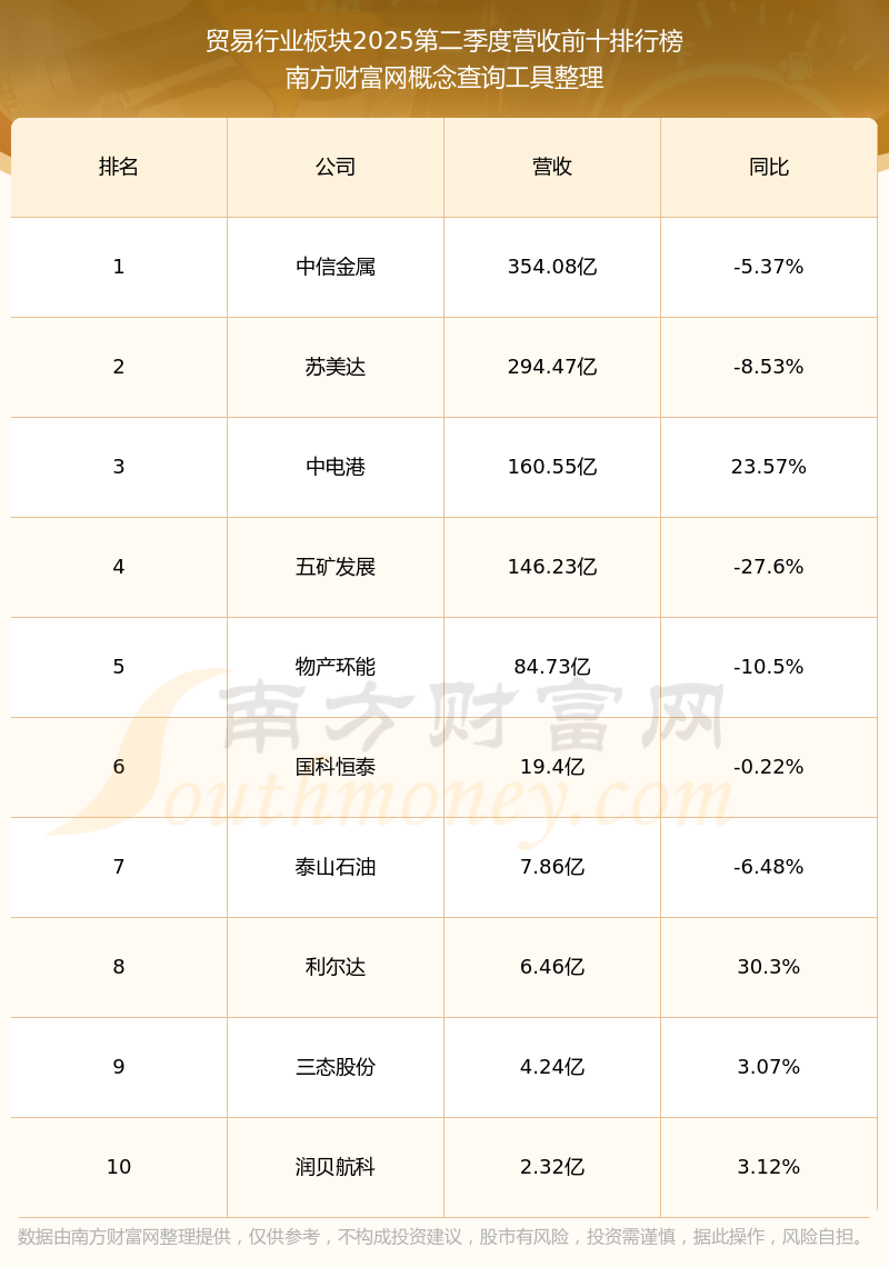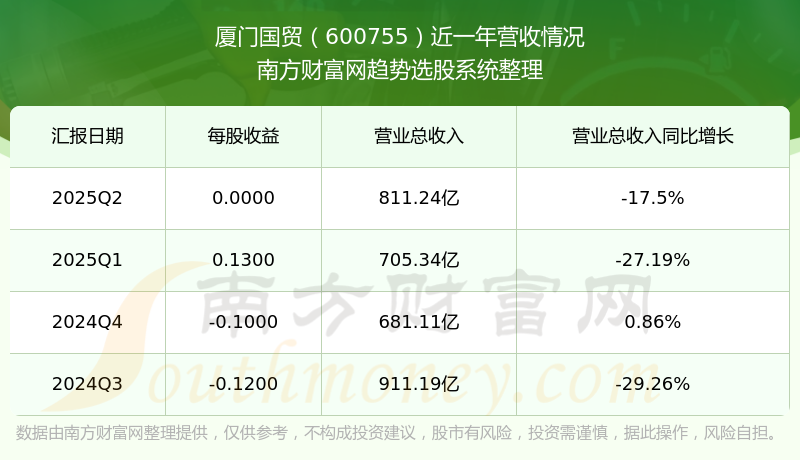 按照南方财富网概念查询工具统计,该股所属板块为贸易行业板块,该板块共有11只股票,厦门国贸2025第二季度营收在该板块中排名为第11名,该板块2025第二季度营收排名前十的股票如下表:
