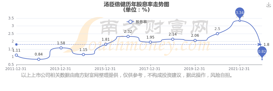 近年汤臣倍健年度股息率走势如下图: