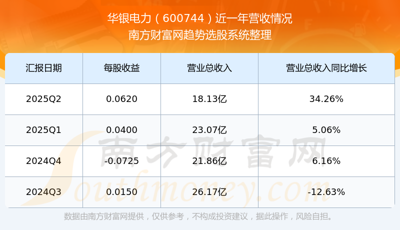 华银电力2025年第二季度显示,公司主营收入18.13亿元,同比34.26%;归母净利润1.31亿元,同比4868.96%;扣非净利润1.31亿元,同比1475.07%。