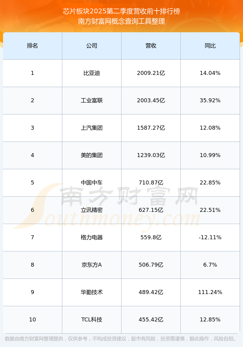 按照南方财富网概念查询工具统计,该股所属板块为芯片板块,该板块共有941只股票,龙迅股份2025第二季度营收在该板块中排名为第776名,该板块2025第二季度营收排名前十的股票如下表: