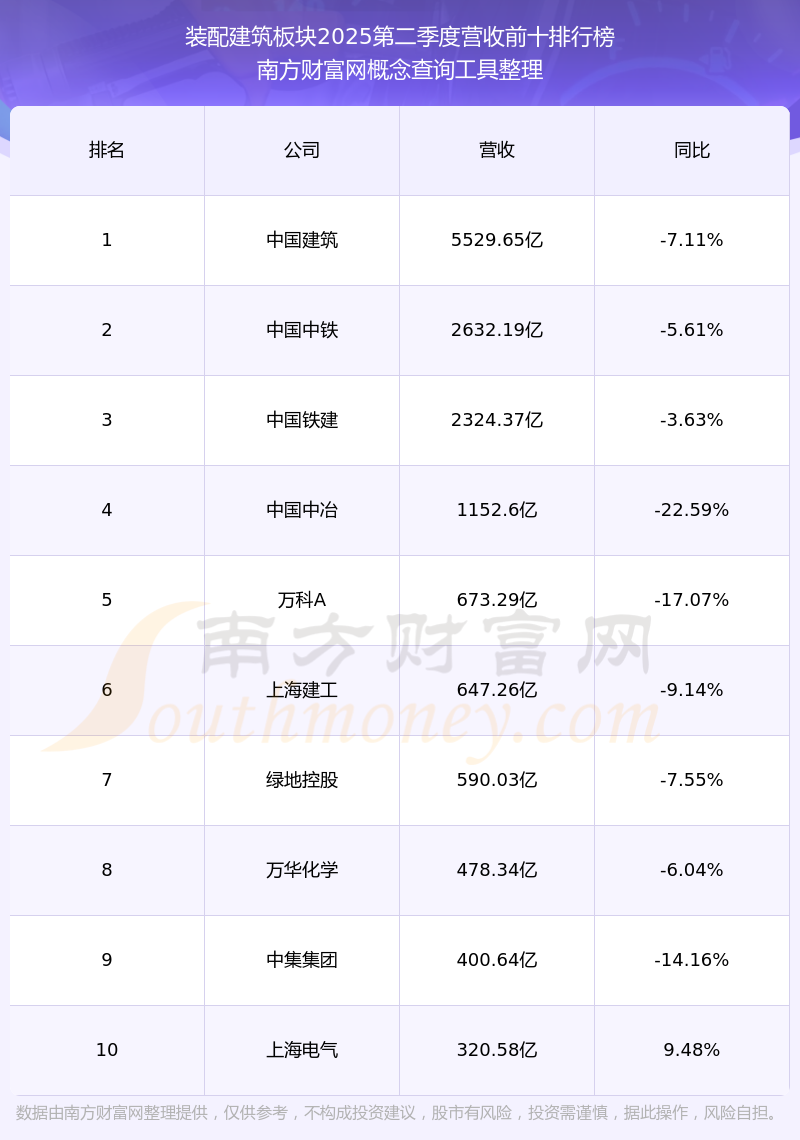 按照南方财富网概念查询工具统计,该股所属板块为装配建筑板块,该板块共有95只股票,重庆建工2025第二季度营收在该板块中排名为第18名,该板块2025第二季度营收排名前十的股票如下表: