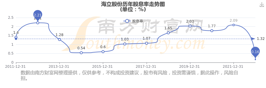 近年海立股份年度股息率走势如下图: