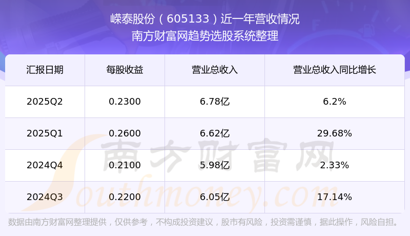 财报显示,2025年第二季度嵘泰股份营收6.78亿元,同比增长6.2%,净利润4949.15万元,同比增长12.83%。