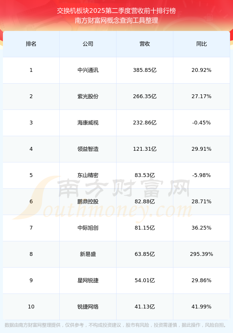 按照南方财富网概念查询工具统计,该股所属板块为交换机板块,该板块共有34只股票,盛科通信2025第二季度营收在该板块中排名为第26名,该板块2025第二季度营收排名前十的股票如下表: