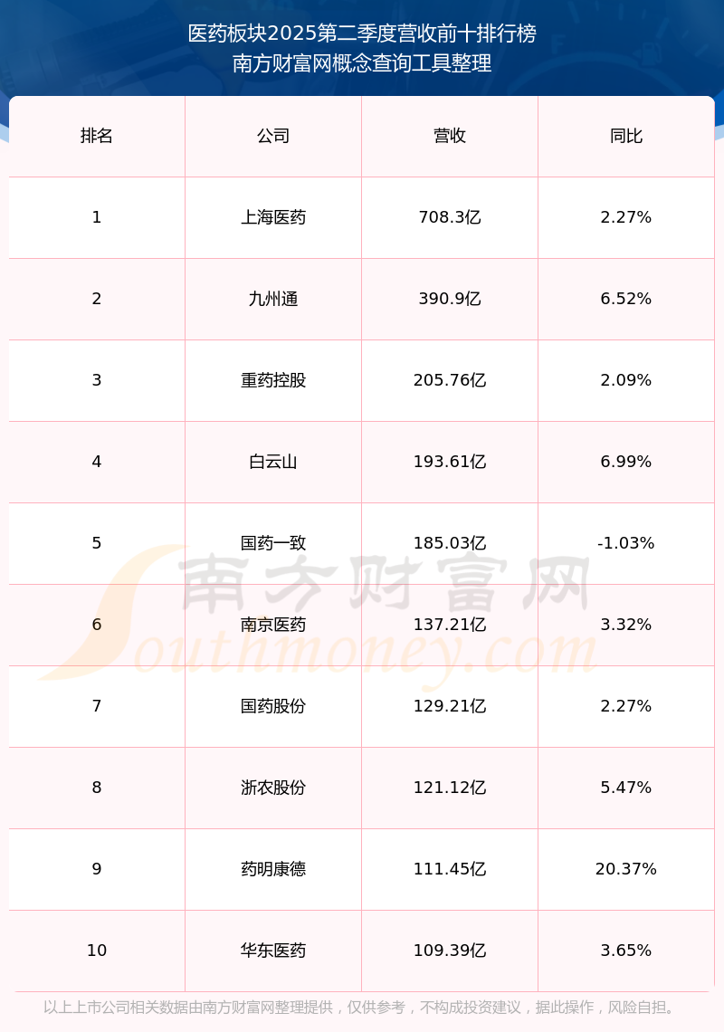 按照南方财富网概念查询工具统计,该股所属板块为医药板块,该板块共有498只股票,人福医药2025第二季度营收在该板块中排名为第21名,该板块2025第二季度营收排名前十的股票如下表: