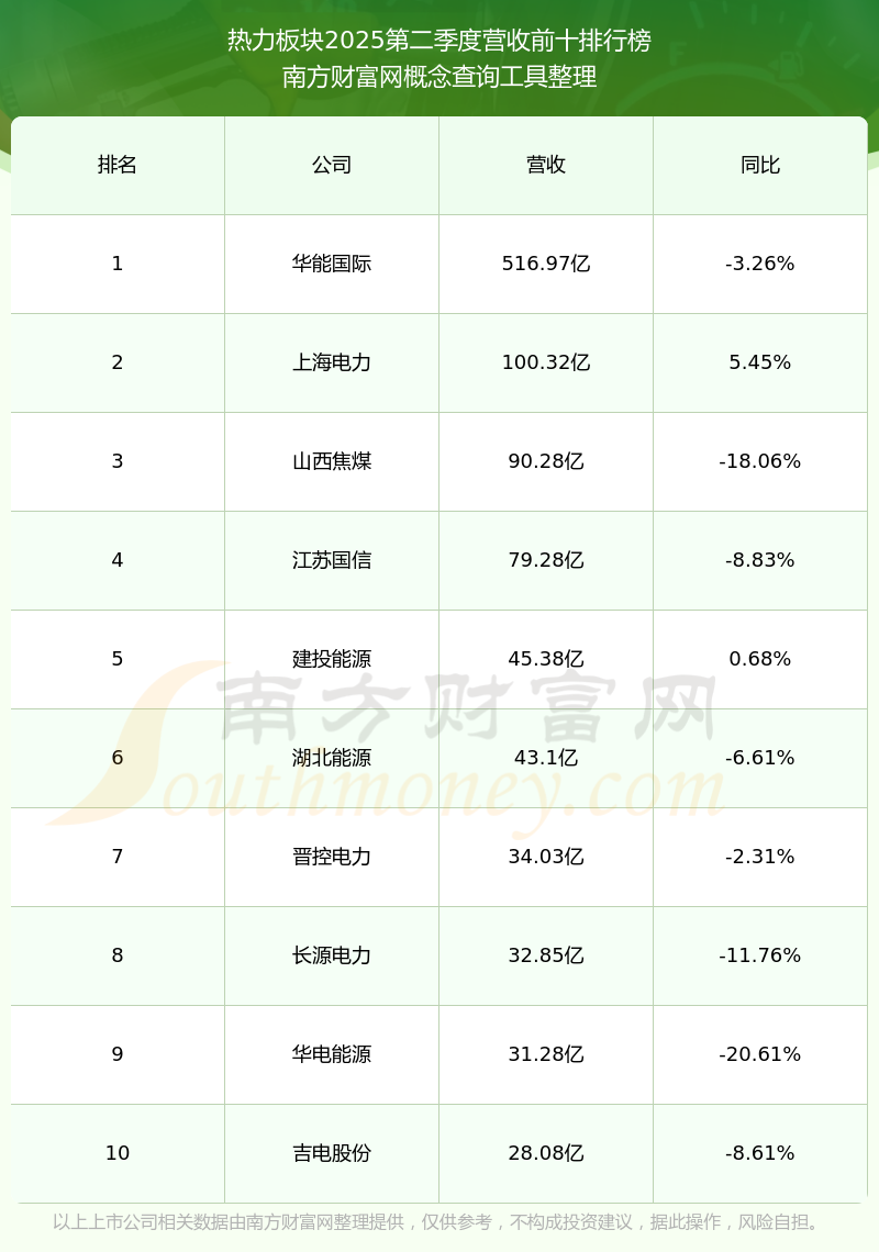 按照南方财富网概念查询工具统计,该股所属板块为热力板块,该板块共有28只股票,大连热电2025第二季度营收在该板块中排名为第28名,该板块2025第二季度营收排名前十的股票如下表: