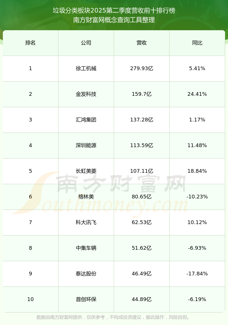 按照南方财富网概念查询工具统计,该股所属板块为垃圾分类板块,该板块共有145只股票,首创环保2025第二季度营收在该板块中排名为第10名,该板块2025第二季度营收排名前十的股票如下表: