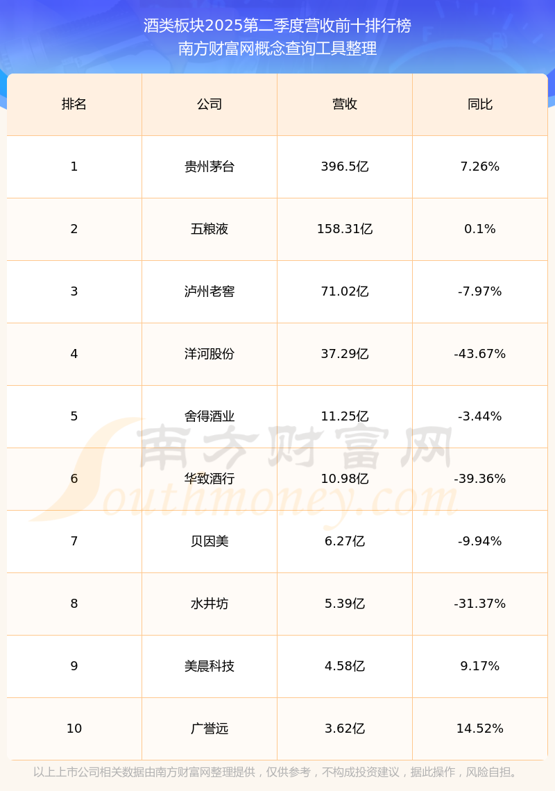 按照南方财富网概念查询工具统计,该股所属板块为酒类板块,该板块共有17只股票,舍得酒业2025第二季度营收在该板块中排名为第5名,该板块2025第二季度营收排名前十的股票如下表:
