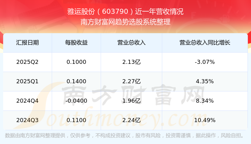 雅运股份股票近一年营收情况如下表: