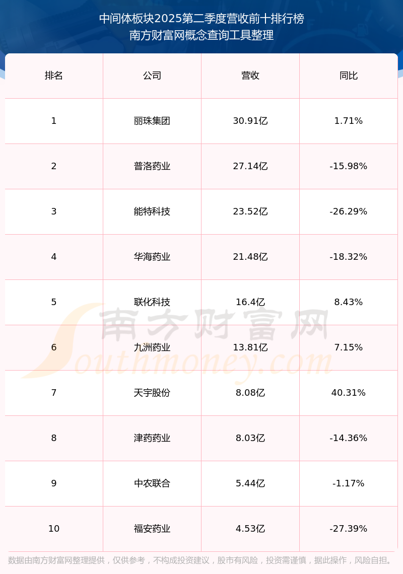按照南方财富网概念查询工具统计,该股所属板块为中间体板块,该板块共有29只股票,嘉必优2025第二季度营收在该板块中排名为第29名,该板块2025第二季度营收排名前十的股票如下表: