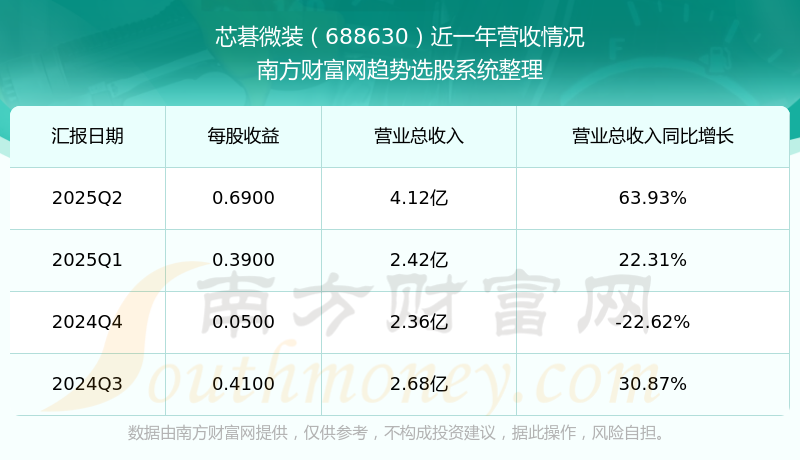 芯碁微装2025年第二季度显示,公司主营收入4.12亿元,同比63.93%;归母净利润9016.63万元,同比47.97%;扣非净利润8435.44万元,同比36.62%;
