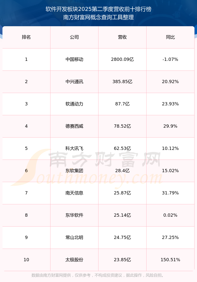 按照南方财富网概念查询工具统计,该股所属板块为软件开发板块,该板块共有216只股票,格尔软件2025第二季度营收在该板块中排名为第158名,该板块2025第二季度营收排名前十的股票如下表: