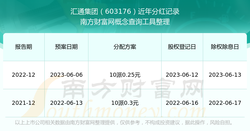 汇通集团最新一次公布的分红方案:10派0.25元。