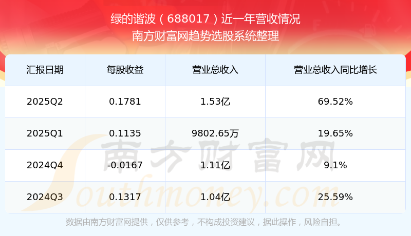 绿的谐波股票近一年营收情况如下表: