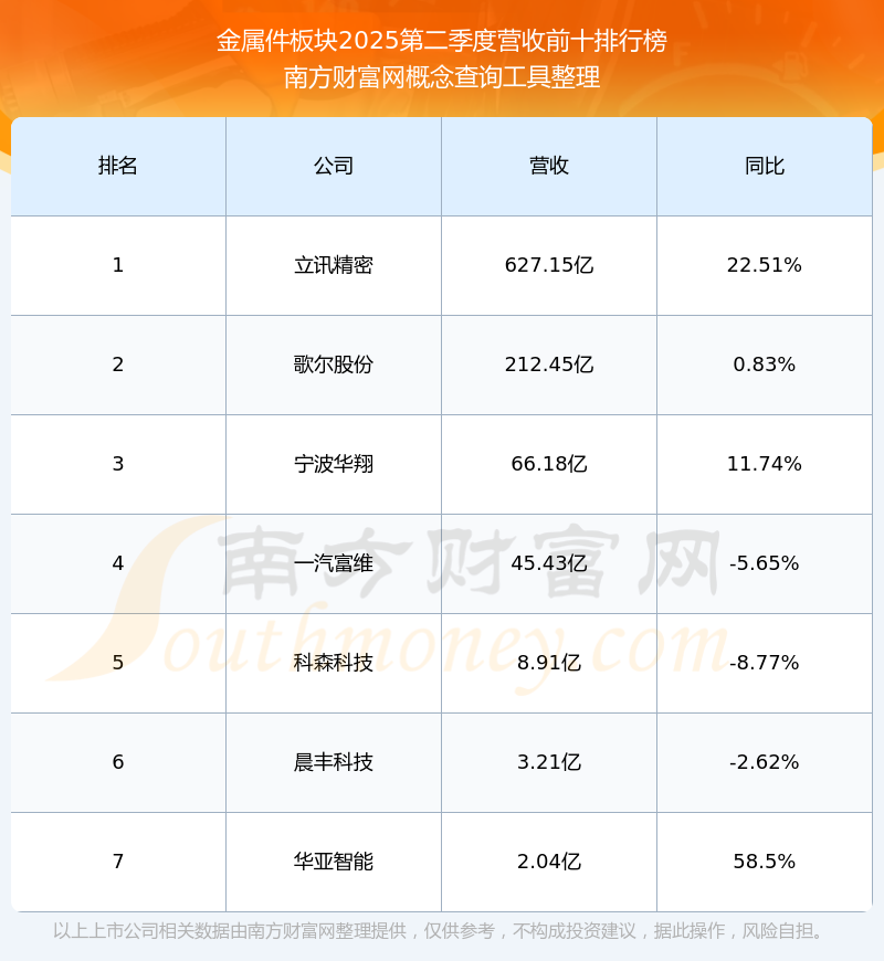 按照南方财富网概念查询工具统计,该股所属板块为金属件板块,该板块共有7只股票,绿的谐波2025第二季度营收在该板块中排名为第7名,该板块2025第二季度营收排名前十的股票如下表: