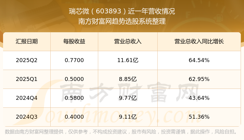 瑞芯微股票近一年营收情况如下表: