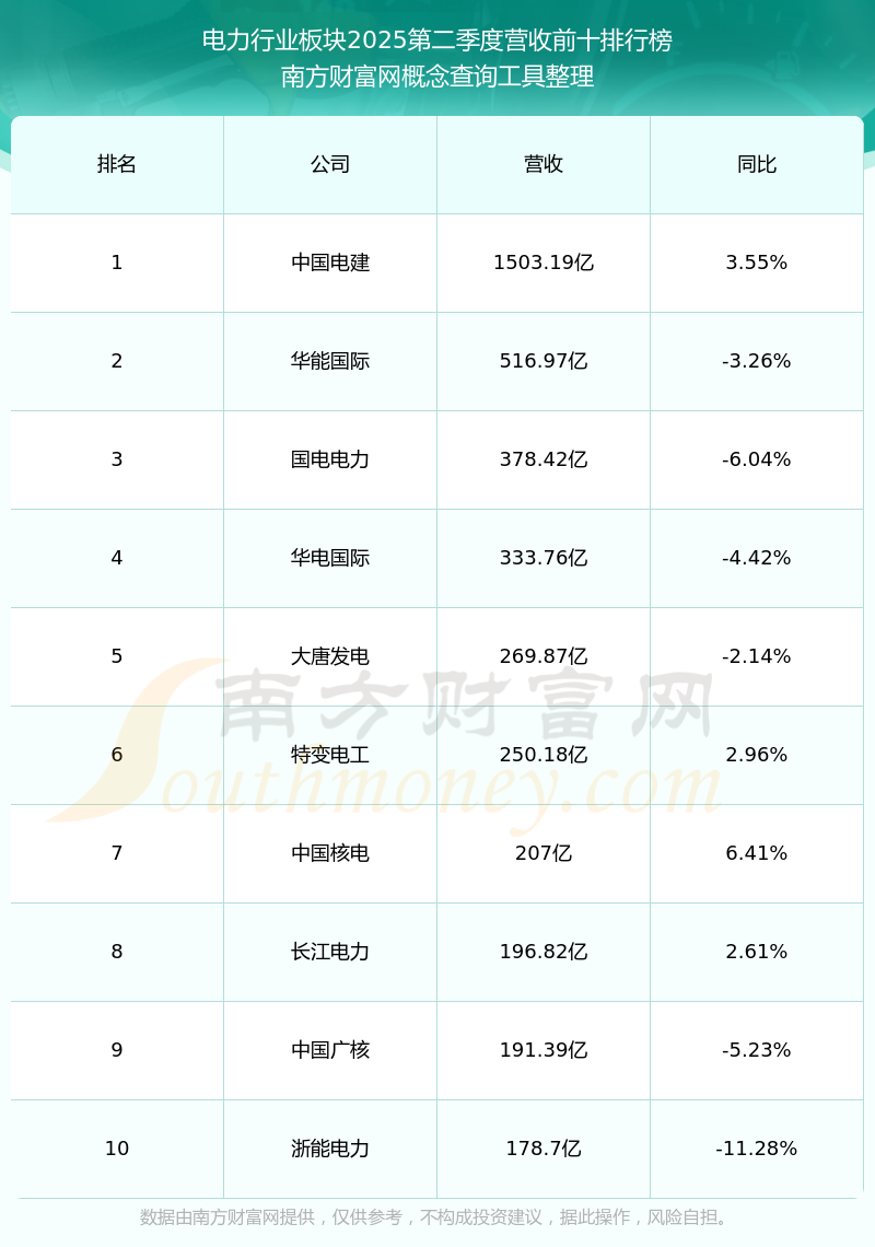 按照南方财富网概念查询工具统计,该股所属板块为电力行业板块,该板块共有93只股票,联美控股2025第二季度营收在该板块中排名为第80名,该板块2025第二季度营收排名前十的股票如下表: