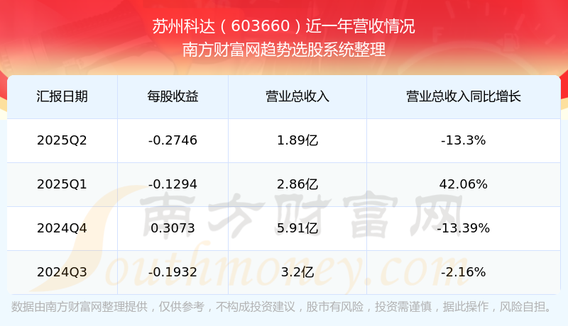 苏州科达发布2025年第二季度财报。实现总营收1.89亿元,同比增长-13.3%;扣非净利润同比增长-32.6%至-1.48亿元。
