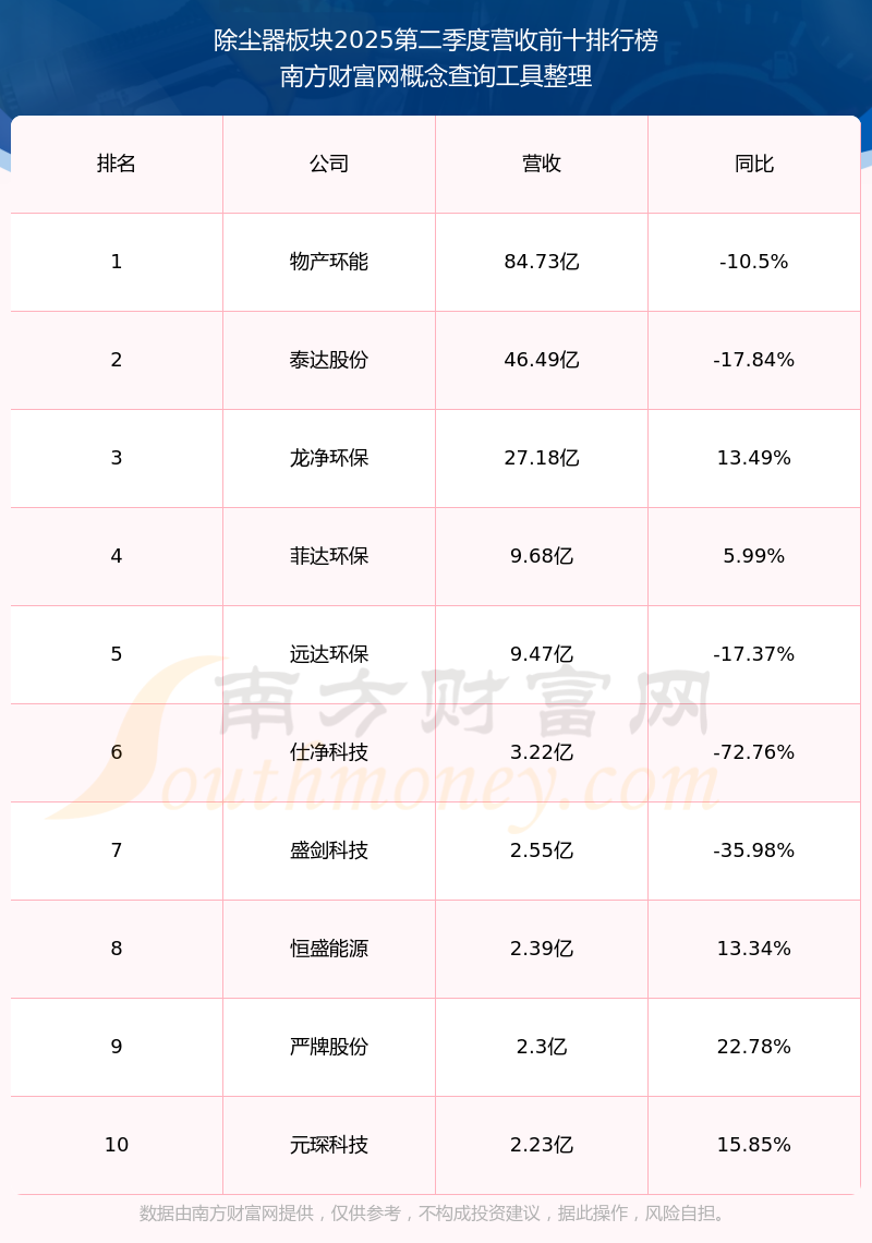 按照南方财富网概念查询工具统计,该股所属板块为除尘器板块,该板块共有13只股票,菲达环保2025第二季度营收在该板块中排名为第4名,该板块2025第二季度营收排名前十的股票如下表: