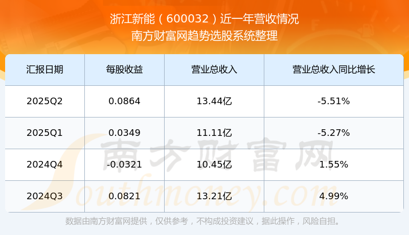 浙江新能股票近一年营收情况如下表: