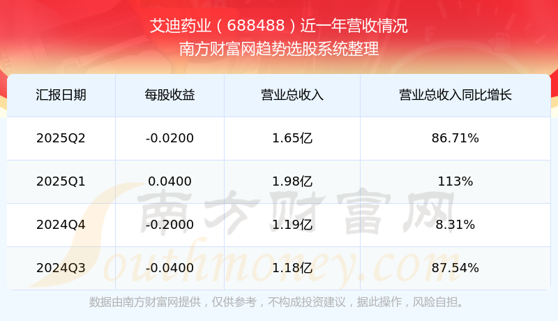 2025年第二季度,艾迪药业营收同比86.71%,净利润同比79.92%。