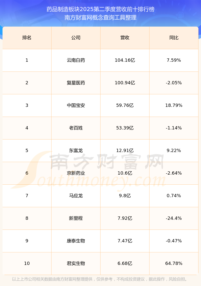 按照南方财富网概念查询工具统计,该股所属板块为药品制造板块,该板块共有15只股票,艾迪药业2025第二季度营收在该板块中排名为第15名,该板块2025第二季度营收排名前十的股票如下表: