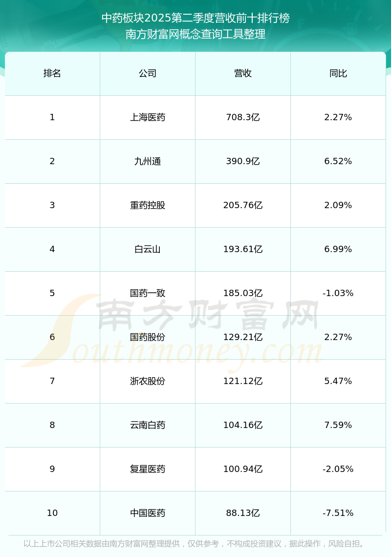 按照南方财富网概念查询工具统计,该股所属板块为中药板块,该板块共有163只股票,金花股份2025第二季度营收在该板块中排名为第136名,该板块2025第二季度营收排名前十的股票如下表: