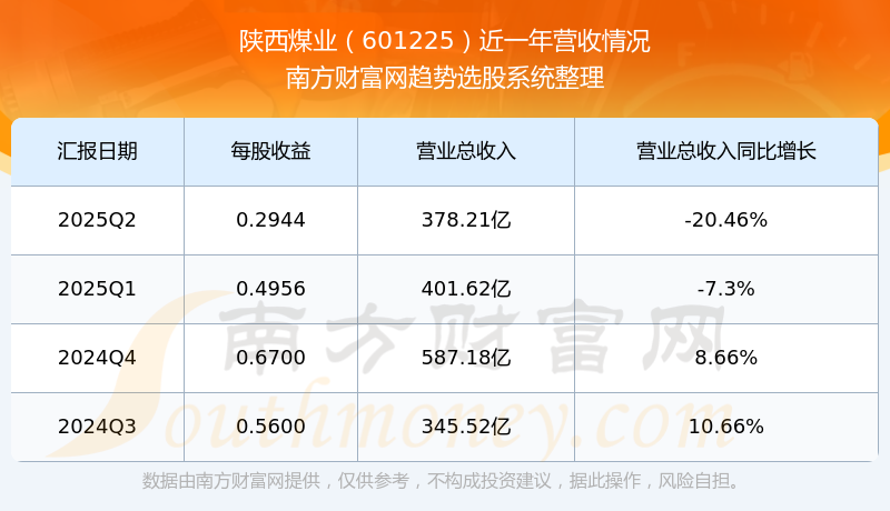 陕西煤业2025年第二季度显示,公司主营收入378.21亿元,同比-20.46%;归母净利润28.34亿元,同比-54.55%;扣非净利润26.71亿元,同比-54.17%。