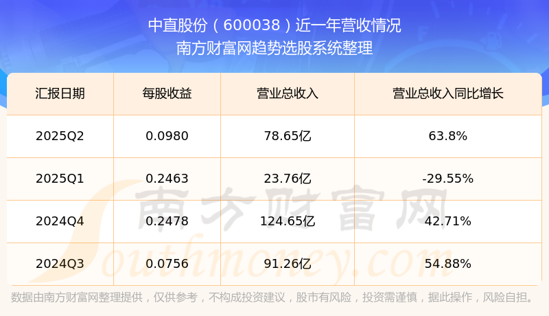 中直股份发布2025年第二季度财报。实现总营收78.65亿元,同比增长63.8%;扣非净利润同比增长-89.83%至1552.83万元。