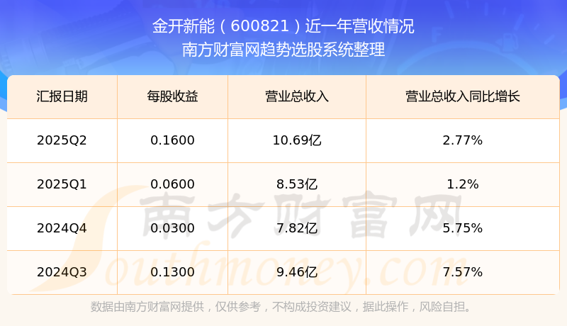 财报显示,2025年第二季度金开新能营收10.69亿元,同比增长2.77%,净利润3.19亿元,同比增长18.53%。