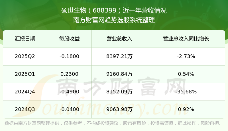 硕世生物股票近一年营收情况如下表: