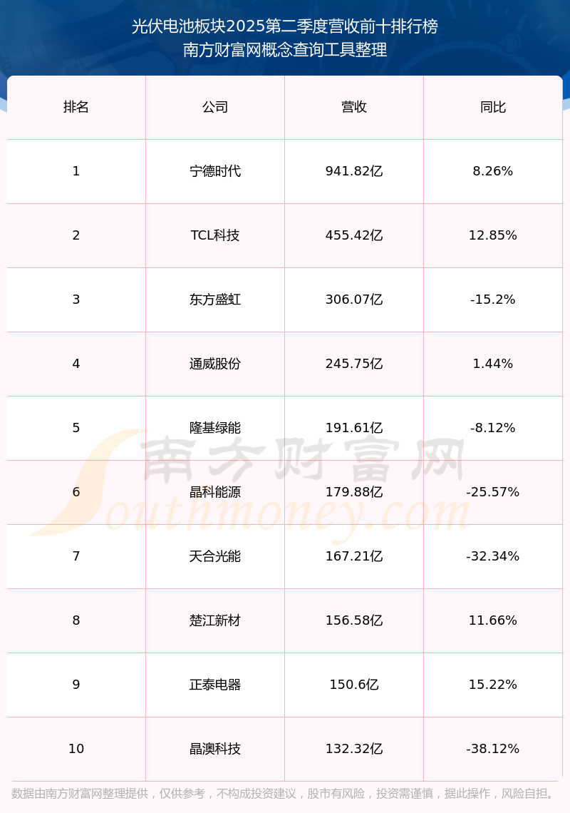 按照南方财富网概念查询工具统计,该股所属板块为光伏电池板块,该板块共有74只股票,时创能源2025第二季度营收在该板块中排名为第74名,该板块2025第二季度营收排名前十的股票如下表: