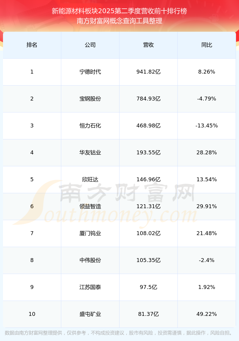 按照南方财富网概念查询工具统计,该股所属板块为新能源材料板块,该板块共有77只股票,中信博2025第二季度营收在该板块中排名为第77名,该板块2025第二季度营收排名前十的股票如下表: