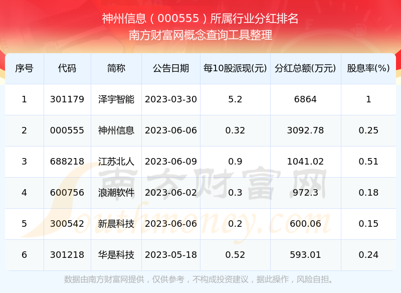 按照南方财富网趋势选股系统统计,神州信息所属行业为系统集成行业,系统集成行业分红排名情况如下表: