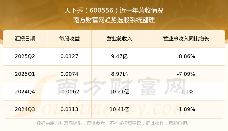 一、天下秀(600556)股票营收情况