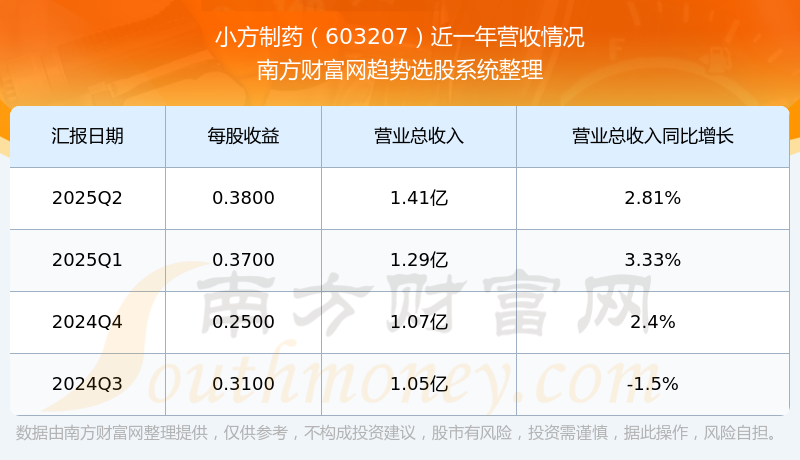 A股上市公司小方制药(代码:603207)发布2025年第二季度财报,公司2025年第二季度归属于上市公司股东的净利润为6097.86万元,净利润同比增长-8.46%,环比增长1.9%。