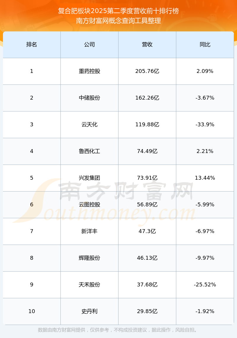 按照南方财富网概念查询工具统计,该股所属板块为复合肥板块,该板块共有44只股票,红四方2025第二季度营收在该板块中排名为第28名,该板块2025第二季度营收排名前十的股票如下表: