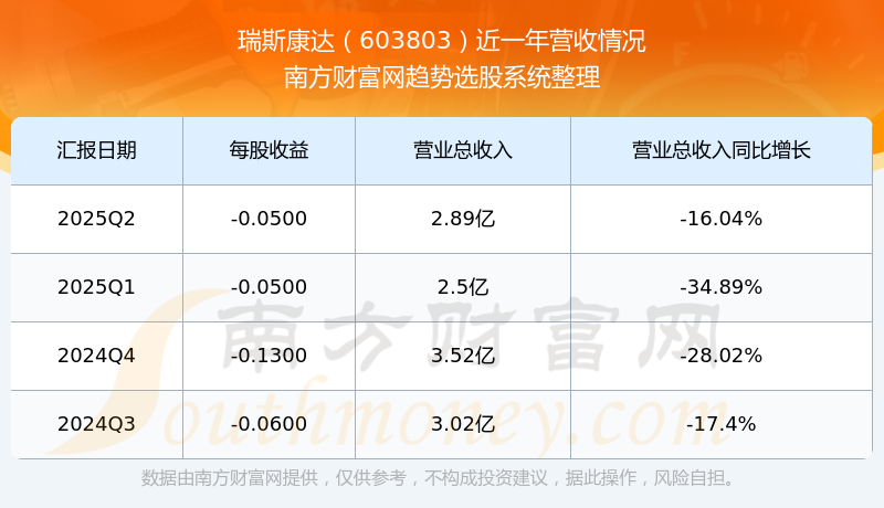 在2025年第二季度,瑞斯康达的业绩表现,主营业务收入达到2.89亿元,实现了-16.04%的同比增长率。同时,公司归母净利润录得-2282.42万元,同比增长60.43%。